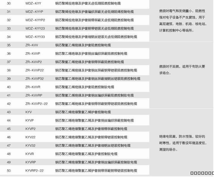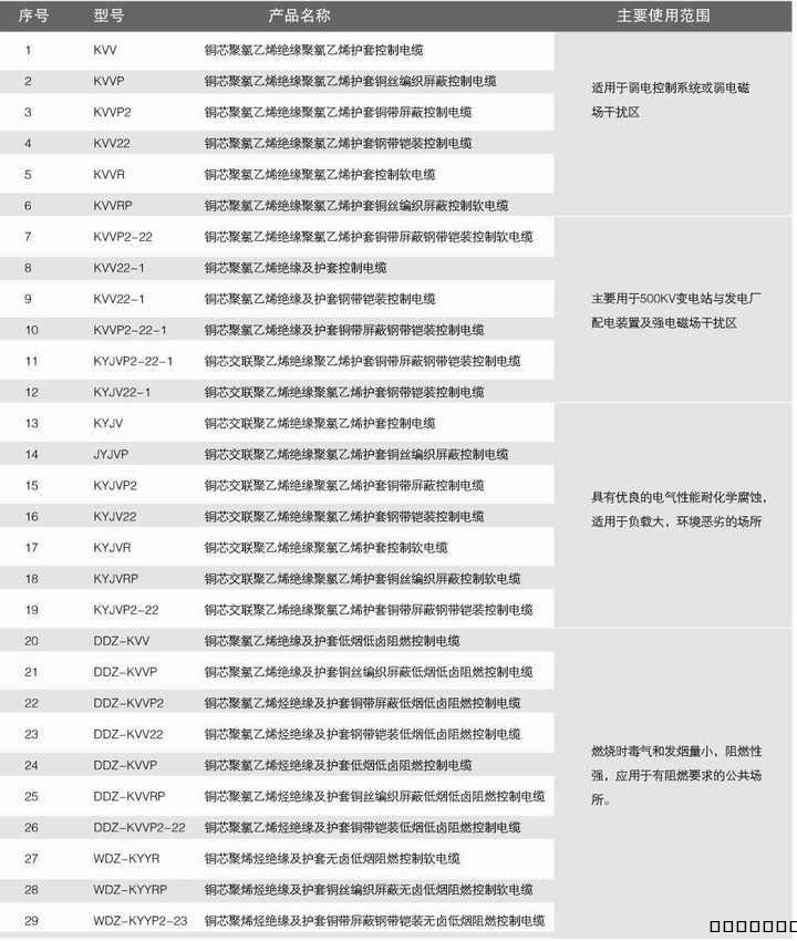 适用于交流额定电压Uo/U为450/750V及以下的控制,监控回路及保护线路。