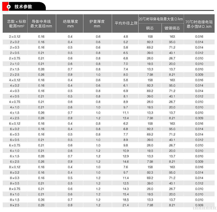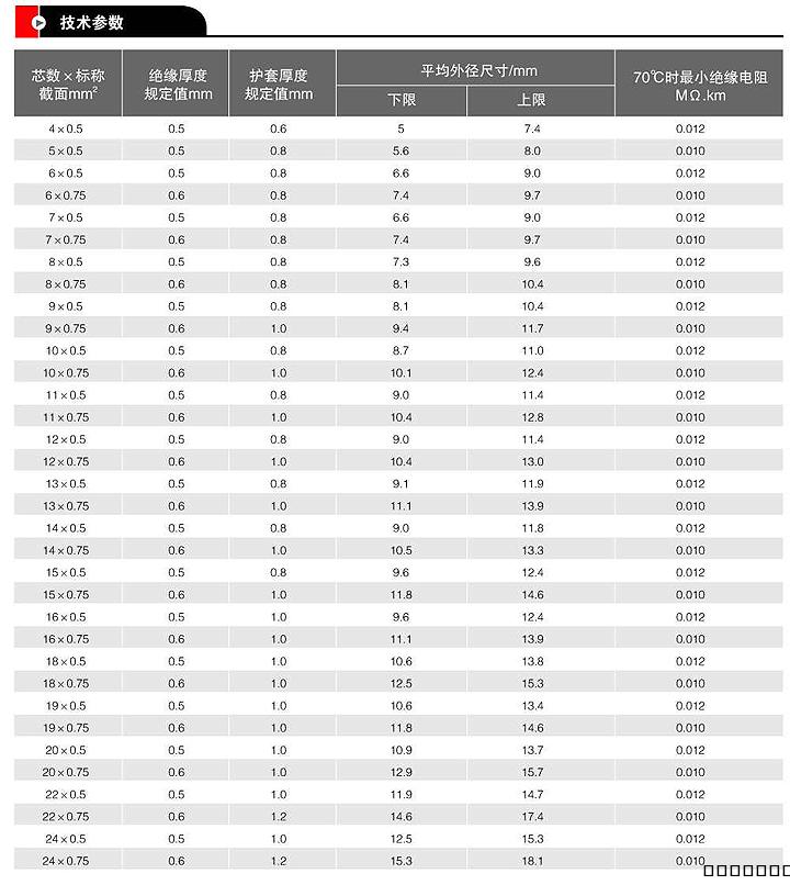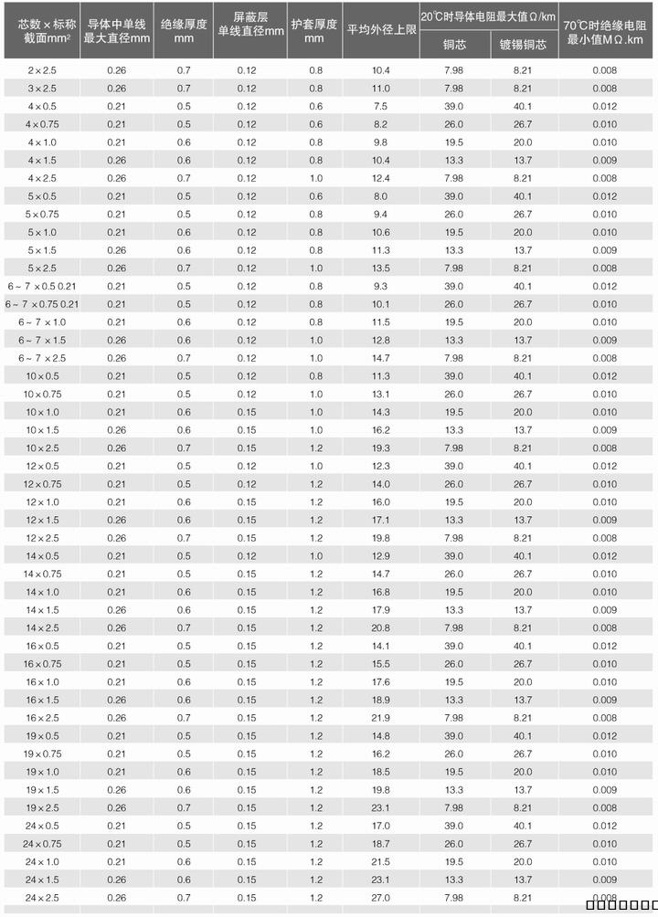 RVVP型300/300V铜芯聚氯乙烯绝缘屏蔽聚氯乙烯护套软电线 单根缆芯面积0.5mm2以上