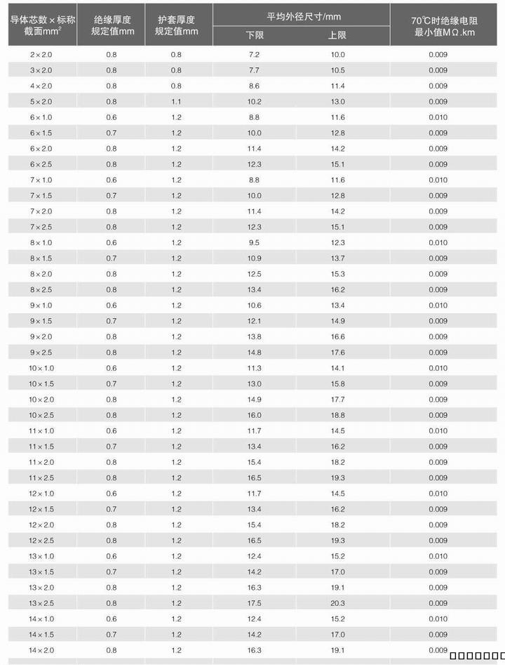 RVV型 300/500V铜芯聚氯乙烯绝缘聚氯乙烯护套软电线 单根缆芯面积2.0mm2以下