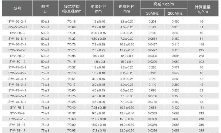 SYV型实芯聚乙烯绝缘,聚氯乙烯护套同轴射频电缆