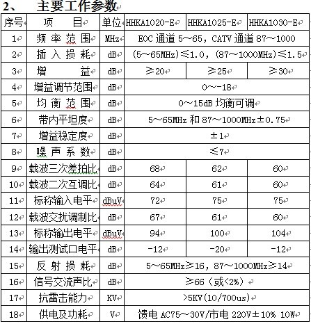 1、概述 本系列放大器专为1000MHz邻频传输系统而设计,外壳选用防雨铝铸盒,功放部分采用管芯推挽放大模块,具有噪声低,动态范围宽,输出电平大的特点,利用推挽平衡技术而有极优的载波互调指标;电源部分选用RO变压器,有效提高电源转换效力;同时,本机在放大器的输入及输出端增加高隔离双工器电路,把EOC桥接功能与放大器结合,方便了用户使用。
