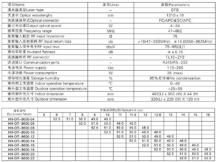 HHOT86××系列激光发射机为CATV及电话应用中的NTSC.PAL数字或压缩数字信息提供优质的信号传输。本机选用